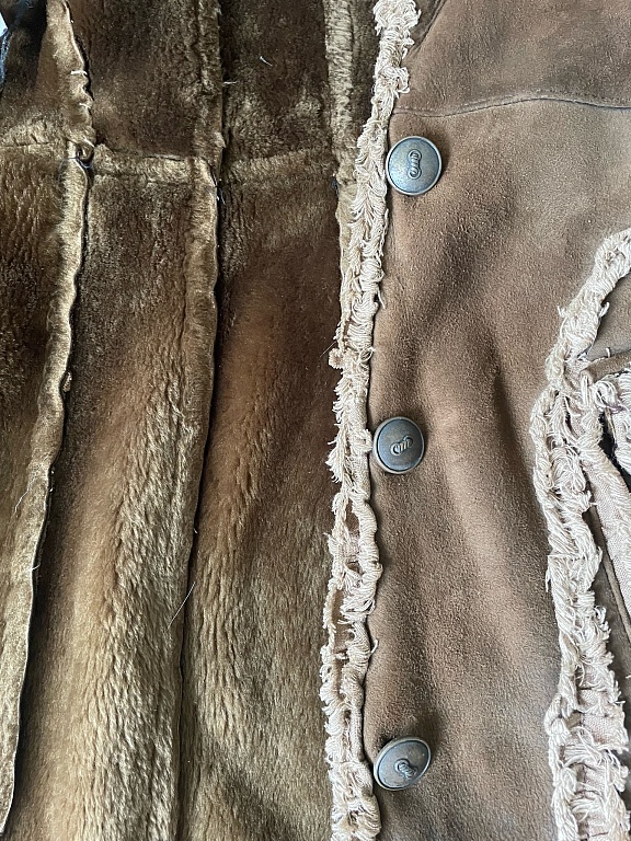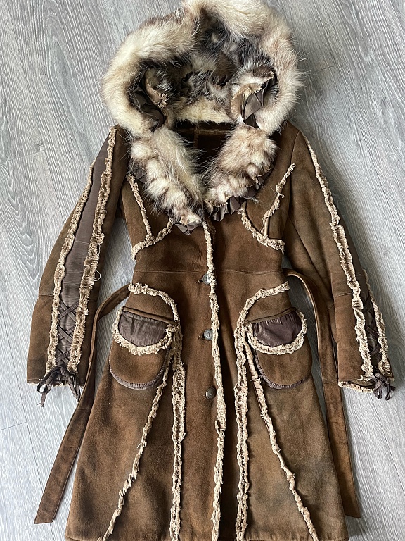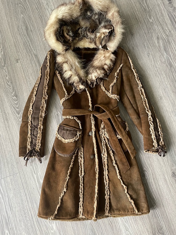 Длина меха до колен, но нижняя часть съемная, и мех становится короче примерно на 20 см.