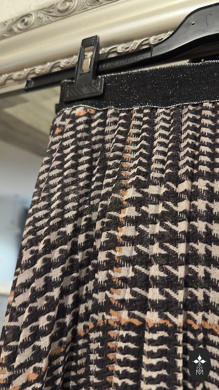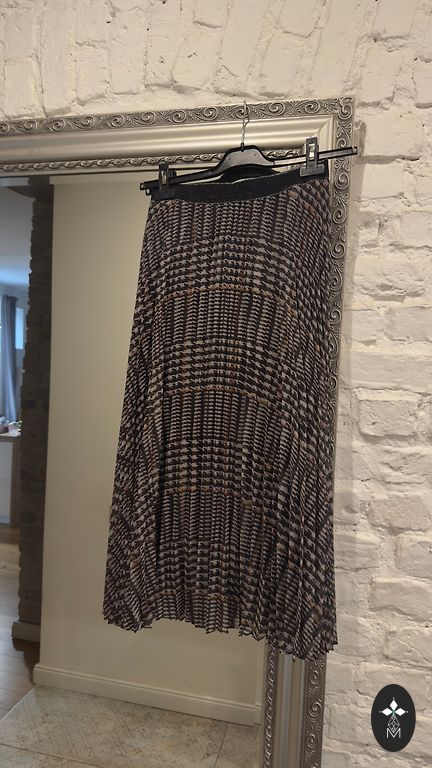 Denim skirt with a cut in the middle. Excellent condition, no defects.