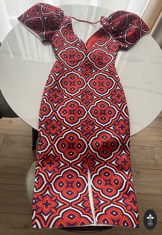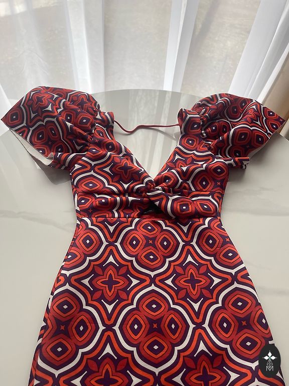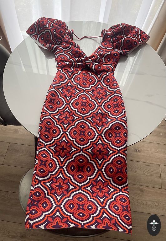 Väga ilus, paksust materjalist kleit lühikeste varrukatega. Kantud üks kord pulmas. Pikkus õlast 87 cm. Rinnaümbermõõt umbes 90-92 cm. Tagaosas varjatud tõmblukk. Ilma voodrita.