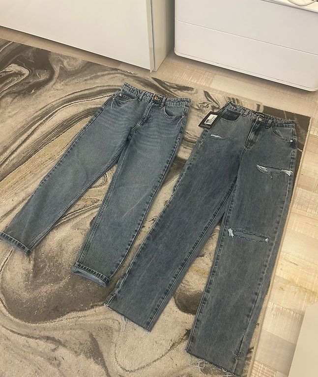 Uued, mitte H&M, aga samuti Rootsi firma, sobivad pikkusele 175-180, väga hästi venivad taljes ja puusades. Sildiga (tähelepanu viimasel fotol, silmusel on veidi lõdvenenud niit, kui soovite, võin parandada õmbleja juures omal kulul)