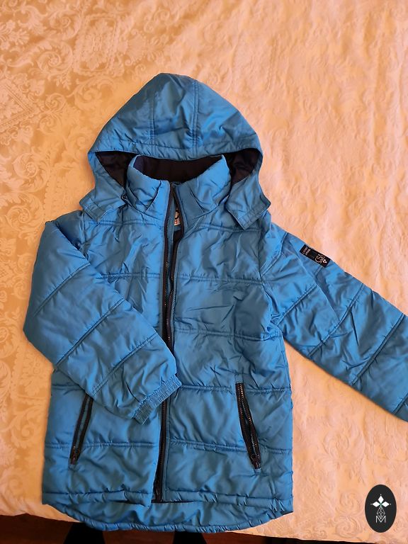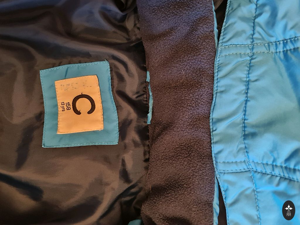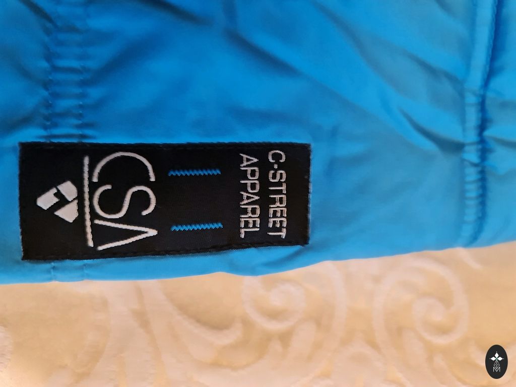 Длина 58 см, задняя часть на несколько см длиннее, ширина под грудью 45 см, рукав от подмышки 48 см. Молнии работают хорошо. Потертые логотипы и отражатели.