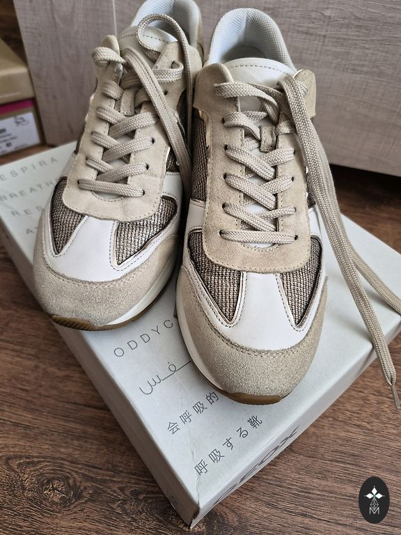 Casual footwear. Size 40 with a 25.5cm insole. There is a defect on the left shoe, missing two snap buttons.