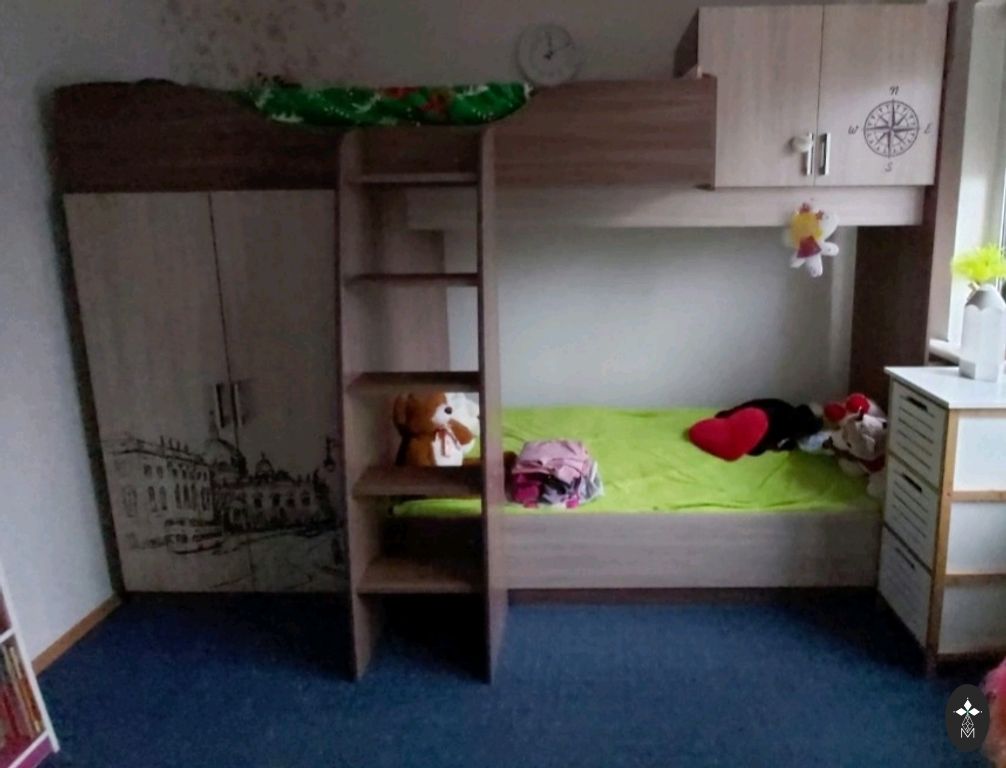 Bed with mattress below.