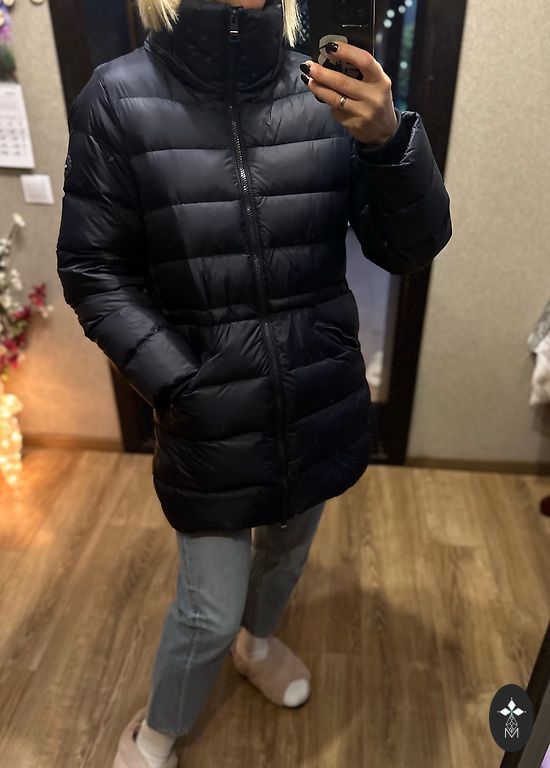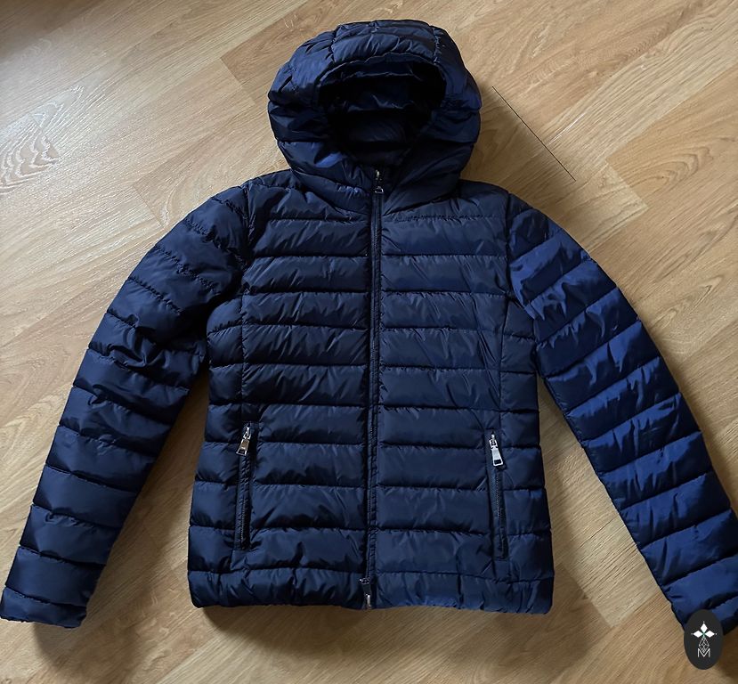 Soe sulejope, sobib S suurusele, jope pikkus 72cm, rinnal 50cm, tumesinine värv. Kapuutsil pole karva.