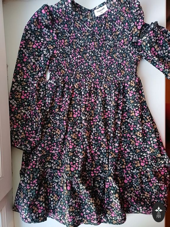 Nėra dėvėtos. 7-8 pagal etiketes, bet tinka 6-7 (116/122). Kaina už 2 vnt. Žiūrėkite 5-ąją nuotrauką - ant geltonos suknelės rankovės audinio yra linijų, kurios nėra akivaizdžios.