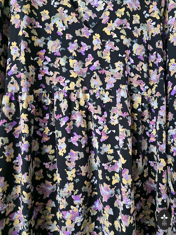 Suknelėje yra 2 veikiančios kišenės, mažas brošiukas ir užtrauktukas gale.