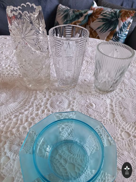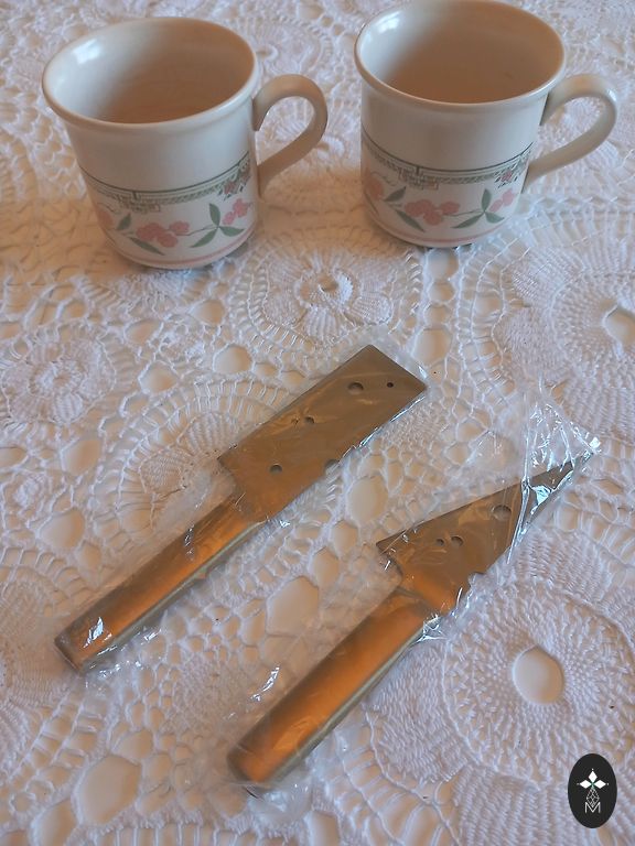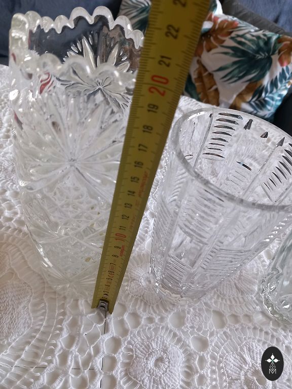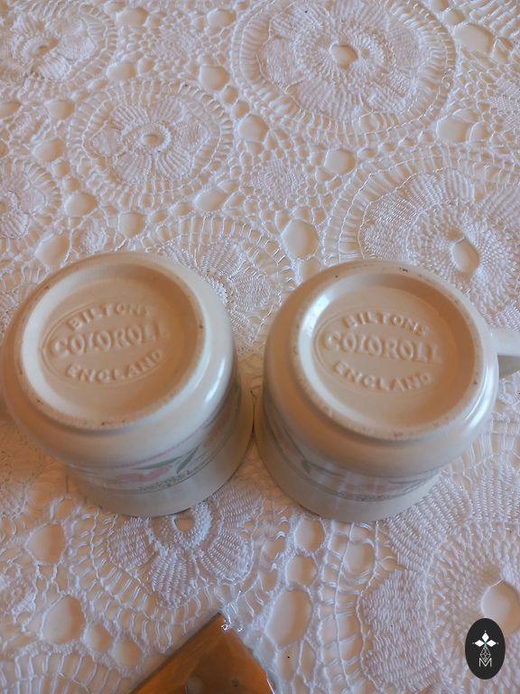 Põrutusi ja pragusid pole. Suuremal on kaunistus tuhmunud, must pitser puudub. Valge 27 cm läbimõõduga ilma pitserita. Hind mõlemale.