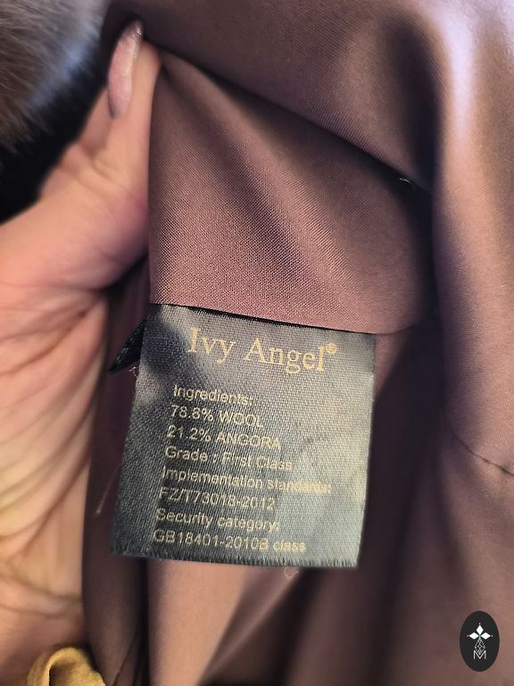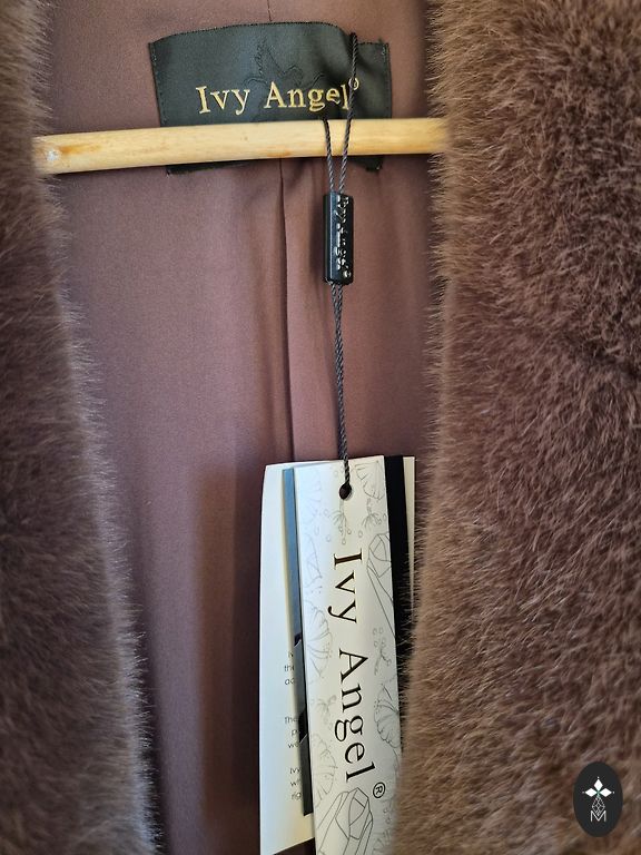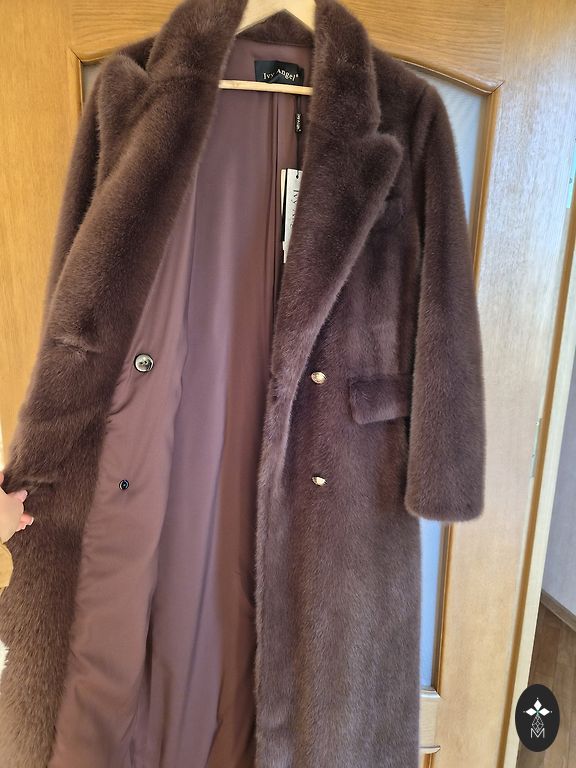 Brand new! Beautiful dark brown coat with insulated interior and faux karakul fur in the collar and sleeve area.