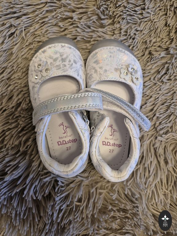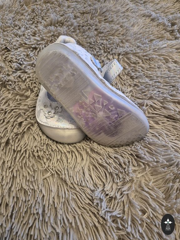 Sparkling shoes with a small heel.