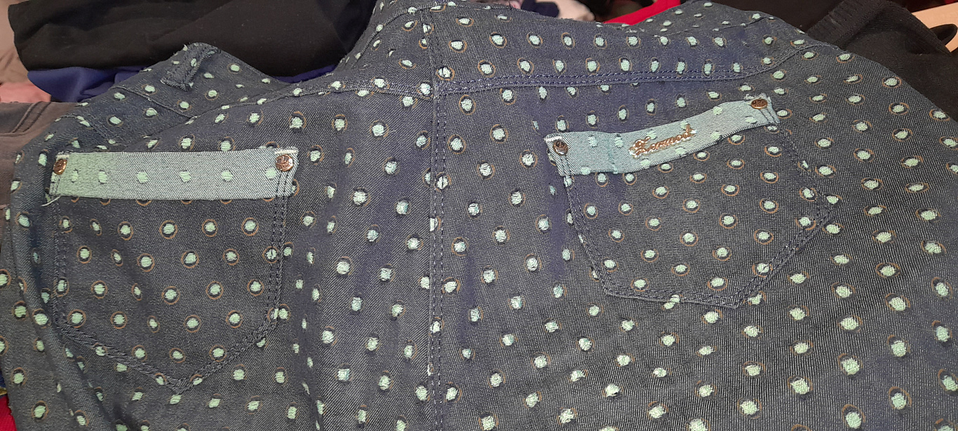 Liemens 90 cm, ilgis 94 cm, klubai 120 cm. Audinys tamprus, dar šiek tiek pasiduos.