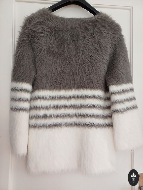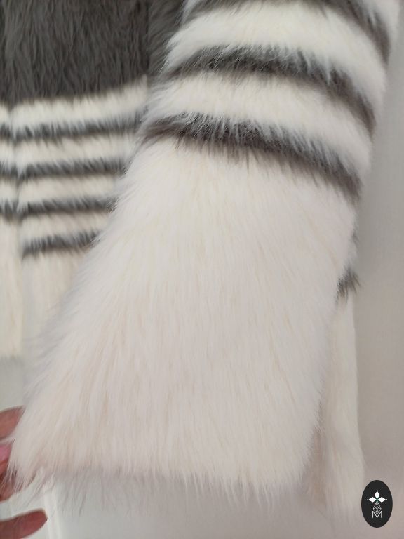 42 izm plecos 48 cm. Krûtìs 58*2 =116 cm. Garums 73 cm rokas gar.no pleca 60 cm. Pufīga viegla...Kapucis noņemams... slēdzējējs...pāri slēdzējam aizdare ar spiedpogām... ir kabatas...