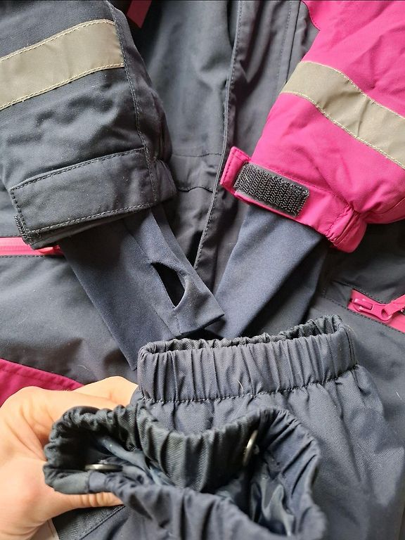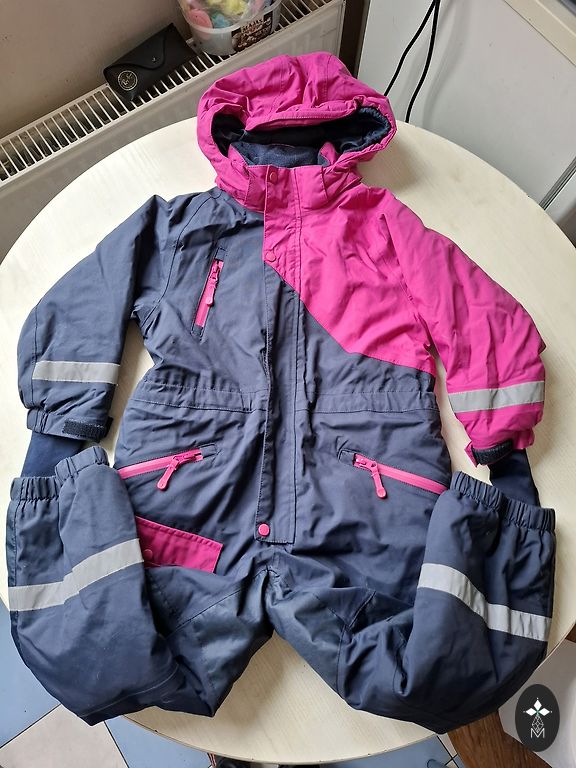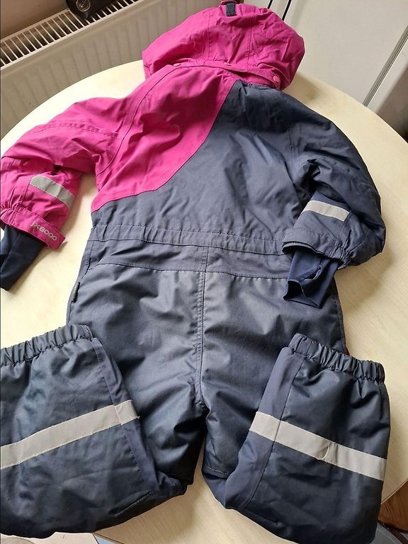 Idealiai būklė po 1 mergaitės, 1 sezono (turėjome kelis kombinezonus, todėl tai nėra kasdieniai drabužiai, dėvimi kasdien). Nėra jokių nusitrynimo ar kitų naudojimo ženklų, labai geras kombinezonas. Pirktas Norvegijoje, Lietuvoje tokių net nemačiau.