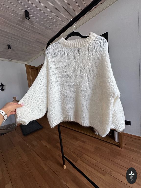 Ручной вязанный свитер из пряжи Alize Kid Royal. Свитер воздушный, легкий, поэтому мягкий и теплый. Состав: 62% мохер, 38% полиамид.