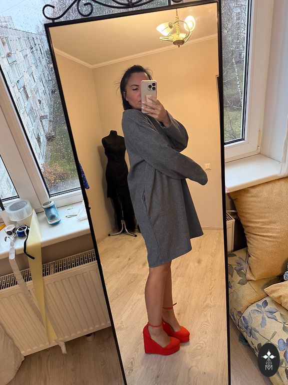 Garums 87 cm, no paduses līdz padusei 51 cm, piedurknes, 49 cm.