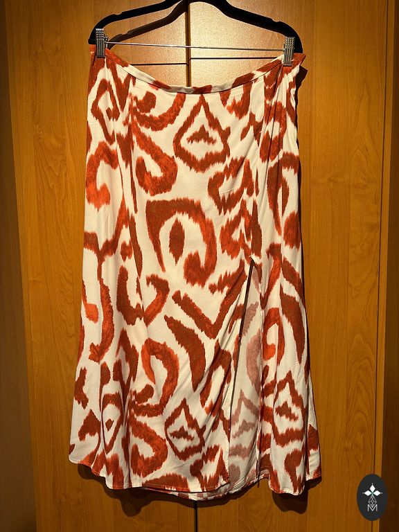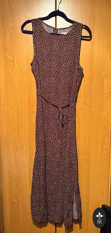 В отличном состоянии, единственный дефект - разрыв внутри подкладки, но снаружи, конечно, не видно. Плотная, жесткая ткань, не тянется. С подкладкой. На бирке 38/M, но не соответствует, больше на S. Смотрите размеры: длина 96 см, подмышки 42 см, талия 35 см, бедра 47 см. Сзади молния, текстура ткани - такие маленькие кисточки. Доставка не включена в цену.