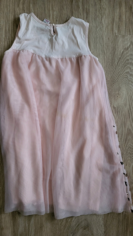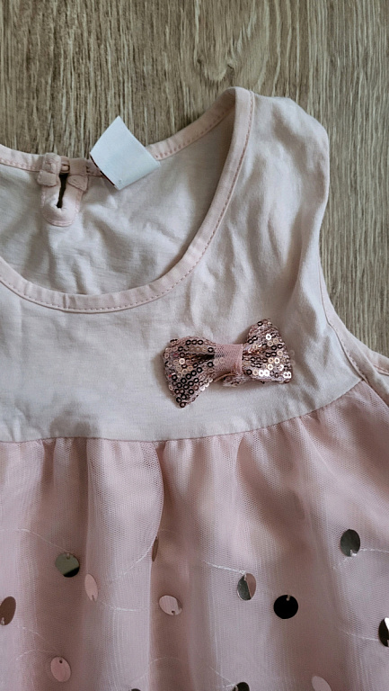 Bordo spalvos suknelė. Gale surišama ir su užtrauktuku. Viršus su blizgučiais.