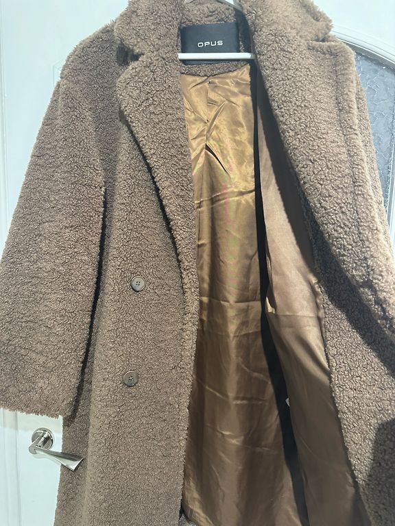 Silts, zolīds mētelis, ar šķēlumiem abos sānos (viegli apsēsties), krāsa pelēcīgi brūna ar haki piesitienu. Garums 121 cm, plecos 41 cm, piedurknes 66 cm, starp padusēm 52 cm.