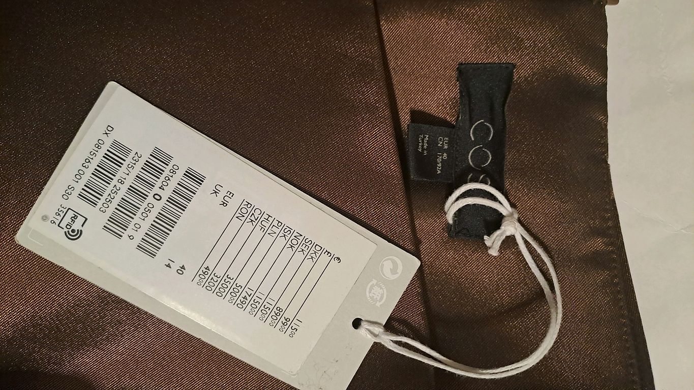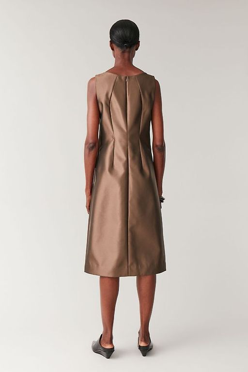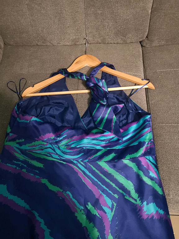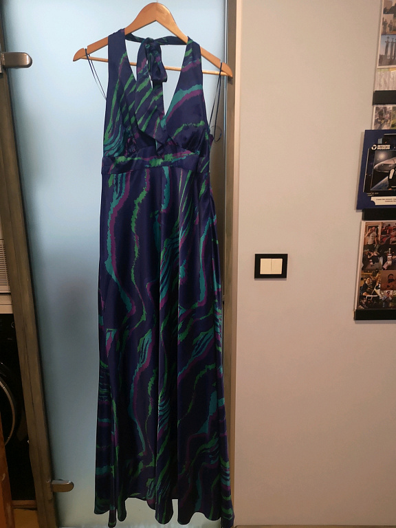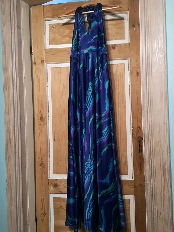 Šventinė suknelė bronzos spalvos. Ilgis 133 cm, krūtinės apimtis 100 cm-110 cm.