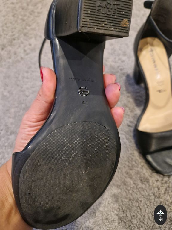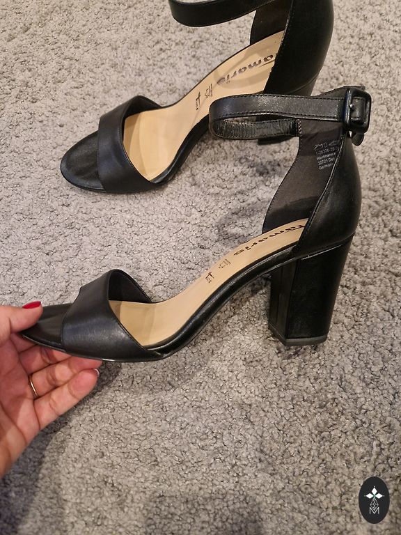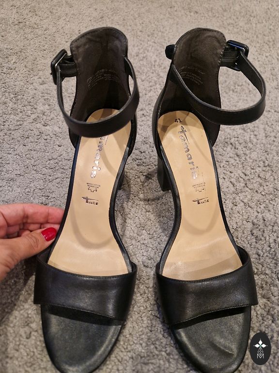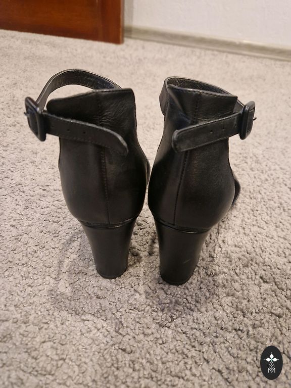 Jauni papēdīši, augstas klases kurpes gan ofisam gan ballītei. Melna ādas klasika. Nēsātas, skatīt foto zolei.