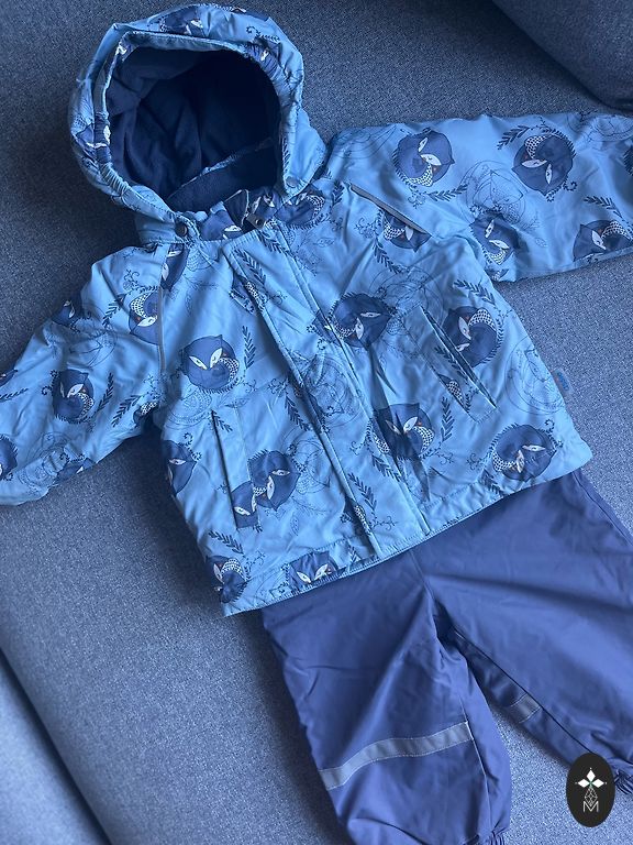 The jumpsuit will be suitable for a warm winter or a cold autumn. Not torn, has small visual defects. Not worn out, as it was used in a stroller. I am giving away a hat with it.