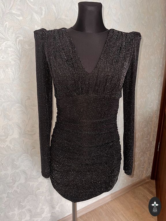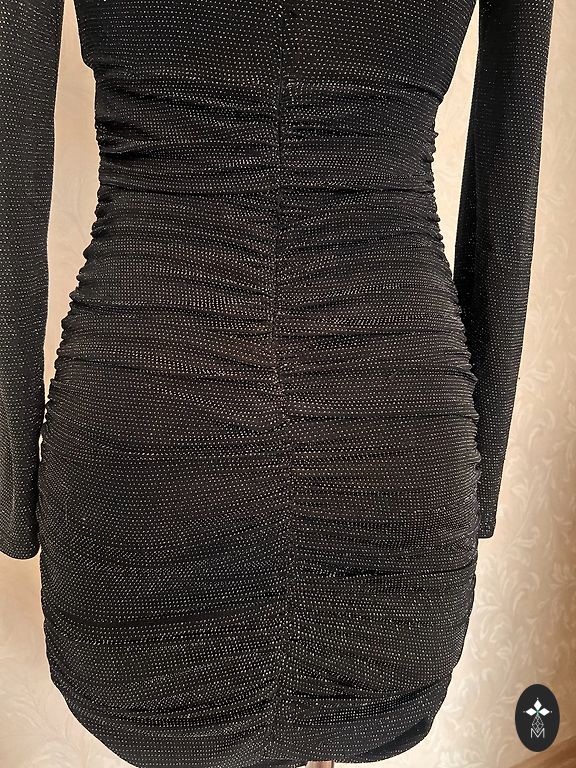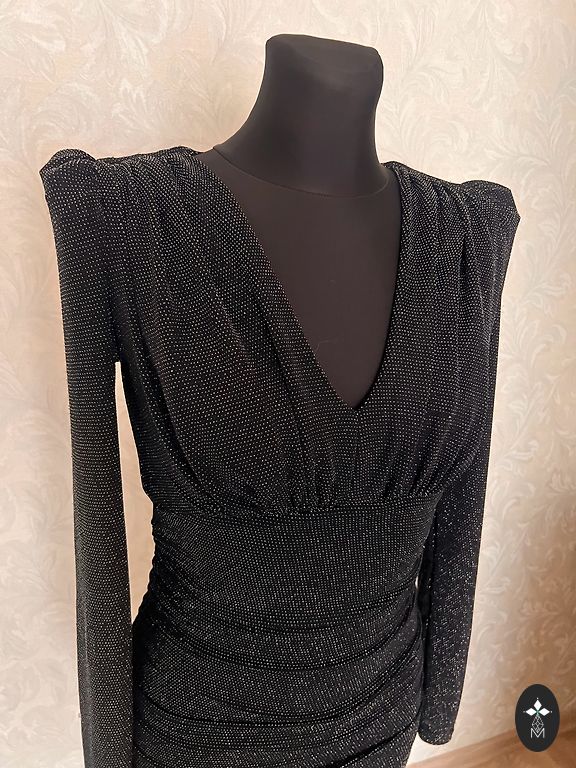 Fitted, silver-colored Monki dress. XS size, length 83cm