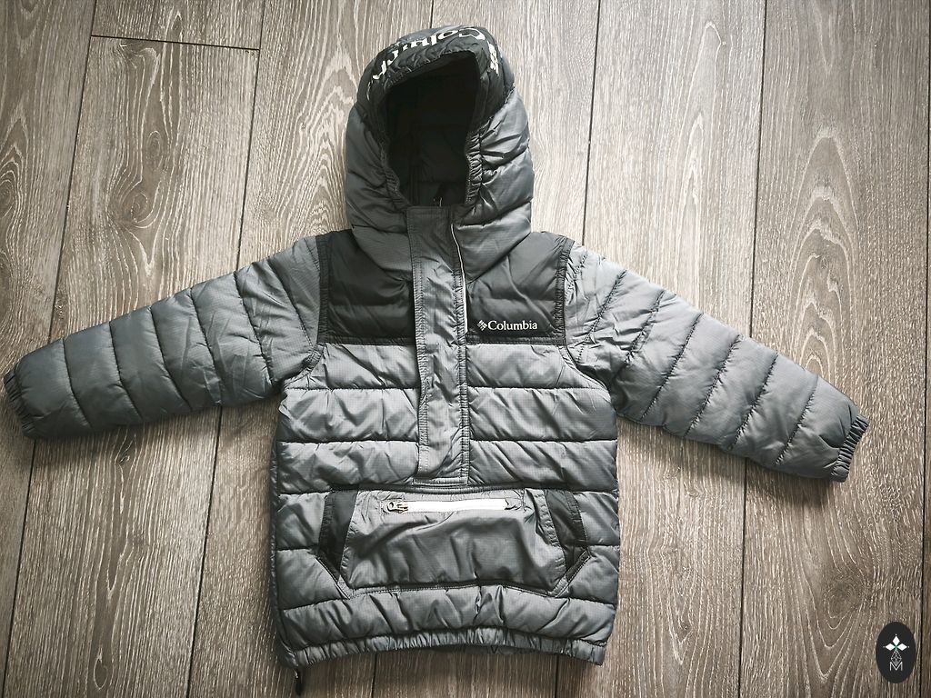 Didrikson jacket size 120cm. Some scuffs are visible, but overall still wearable for another young person. Not super thick, suitable for mid-season or warmer winter days, basically like now.