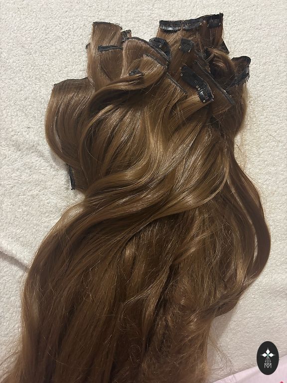 Tumedad pruunid juuksed poest Mella. True Hair. 100 salgu 20-30cm. Külgedel oli järk-järgult. 50 salgu 40cm 1b 4# tooniga 20 salgu 50cm 1b 95 salgu Mella Hair 53-55 cm. Kapsleid tuleb vahetada. Kantud 3 kuud. Väga heas seisukorras, kuid järk-järgult.