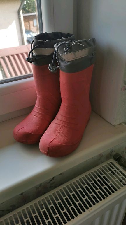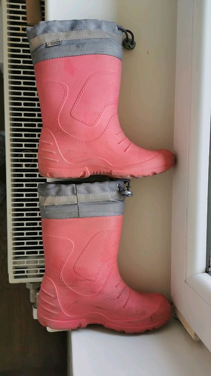 Сапожки для влажной погоды. С теплой внутренней частью, съемной. С носком будет хорошо для ножки 15 см, без носка подойдут даже на 17 см.