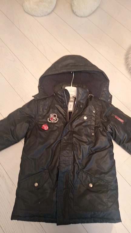 New, warm quality, thoughtful children's winter jacket. Neck closure, drawstrings, down. Unisex model, new price around 300 eur.