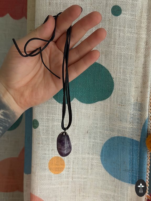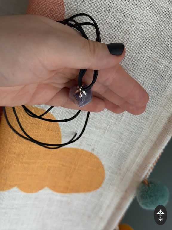Visiškai unikalus, rankų darbo kaklo papuošalas iš epoksidinės dervos – vienintelis egzempliorius pasaulyje. Organinė, skulptūrinė forma, dekoruota grandinėlėmis, perlų elementais ir kriauklių akcentu. Ilgis reguliuojamas. Būklė – nauja.