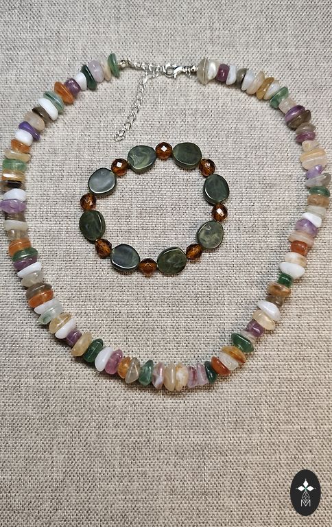 Dabīgu akmeņu imitācija,Rotas garums-44.cm+7.cm pagarinājums.Rokasspradze uz 18.cm