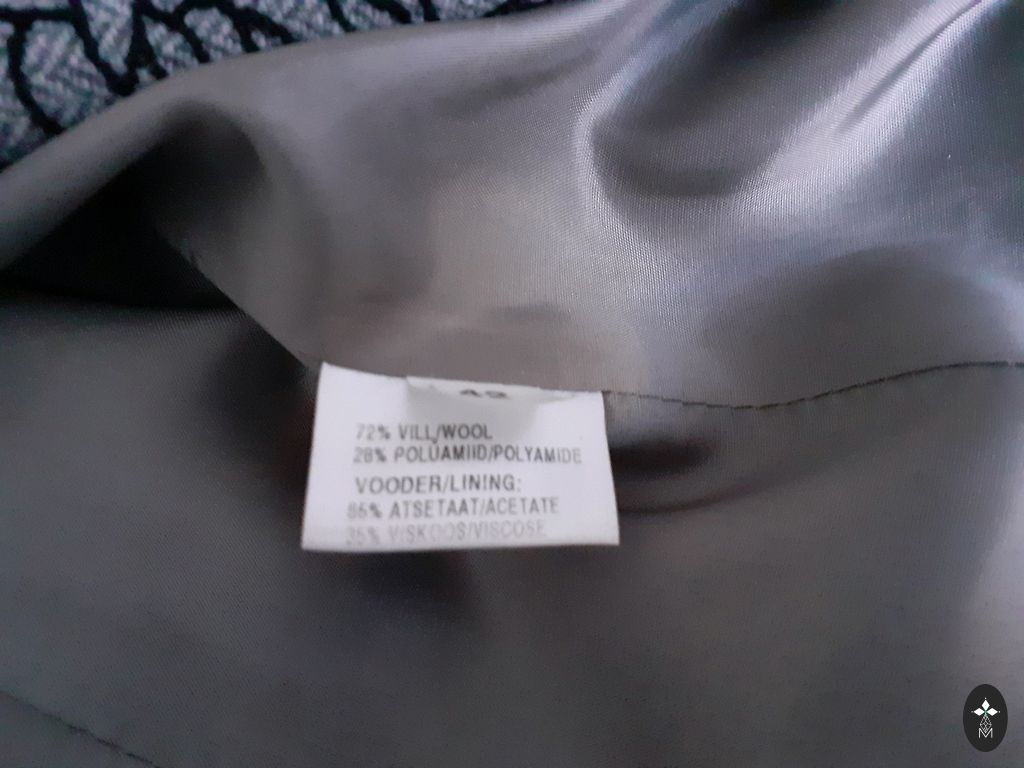 Švarko krūtinė - 55, rankovės - 45, ilgis - 96 cm.