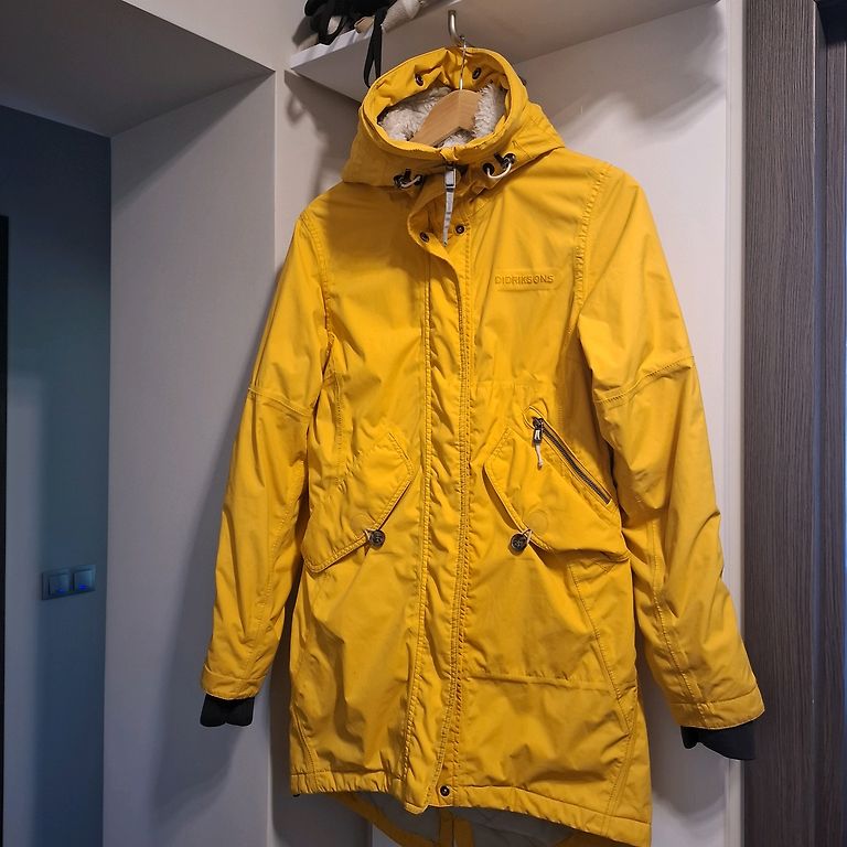 Medium-length coat. Not very puffy.