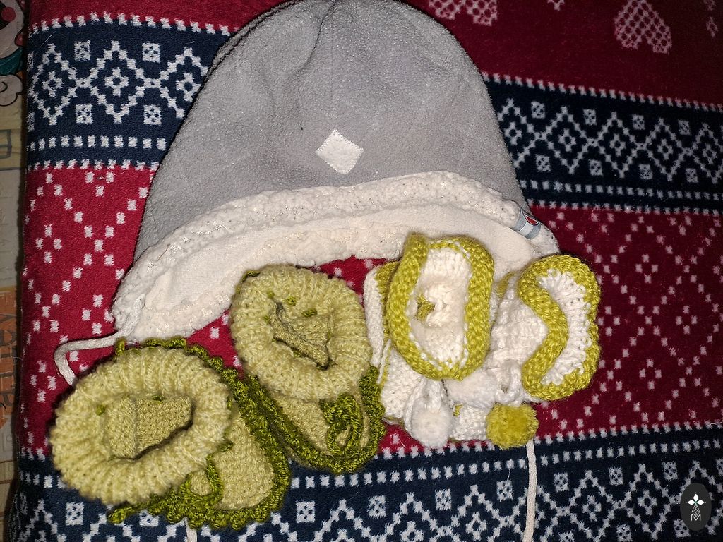 Dubultie flīsa cimdiņi. Izmērs nav norādīts, bet +/- 1-2 gadi.