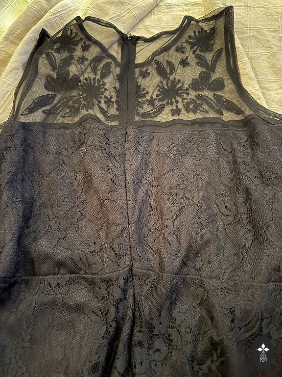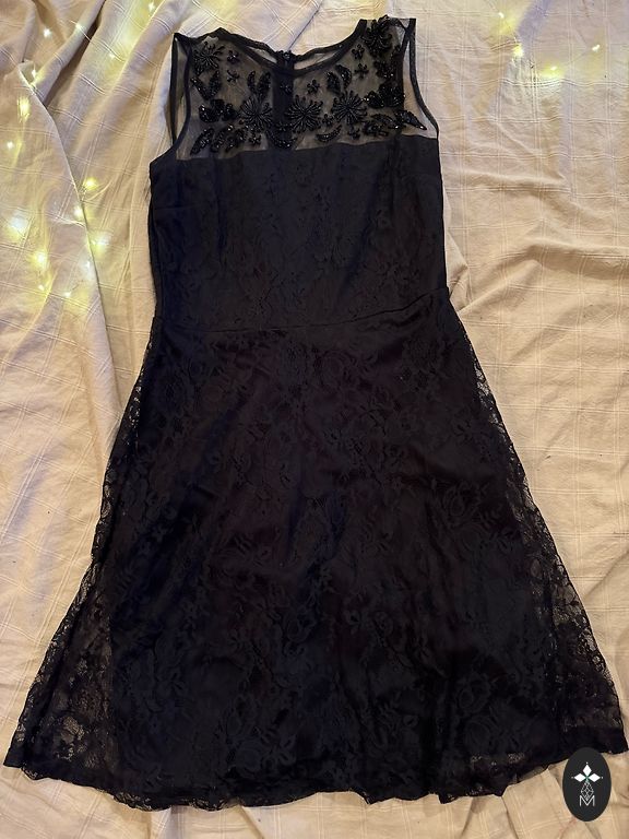 A very beautiful and festive white dress with lace. It has been in the closet for a long time and has not had its debut, never worn. Size 14 or 42. It might need to be taken to a seamstress because the top of the dress is disproportionately large. Personally, my bust is 107 cm and the top is significantly too large. Can be worn without a bra, with a rather deep cut at the back. If you have any questions, feel free to let me know!
