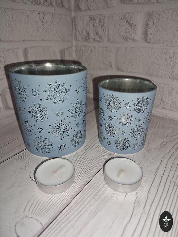Metal candlestick with frosted glass. Height 26 cm, base diameter 10 cm, shade width 13 cm. Used.
