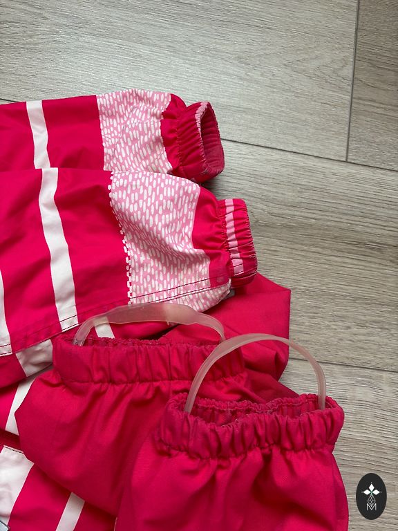 Topolino Softshell starpsezonas kombinezons 104.izm., ar siltu flīsa iekšiņu un vairākiem atstarotājiem. Staru galos gumijas (padilušas, bet vēl savu funkciju pilda), kombītim priekšā daži nelieli pleķīši, skatīt pēdējo bildi. Citādi ļoti labā stāvoklī. Klāt došu dāvaniņā divas cepurītes un tuneļšallīti.