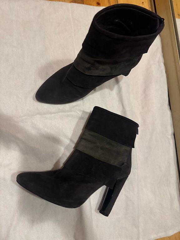 Uued poolsaapad, seemisnahast soojustusega sees. Suurus 37,5, 24 cm. Kontsa kõrgus — 9 cm.