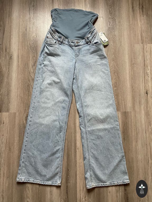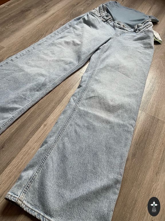 Next mama teksapüksid aktuaalselt laia säärega, väga mugavad, kandsin ka 2 kuud pärast rasedust. Kõik kummid omal kohal, ühel siseküljel väike roosa täpp, tõenäoliselt markerist, kuid seda on raske isegi pildistada, kuna see on väga väike. Muud defekte pole. Ostetud kevadel uuena, pärast esimest rasedust.