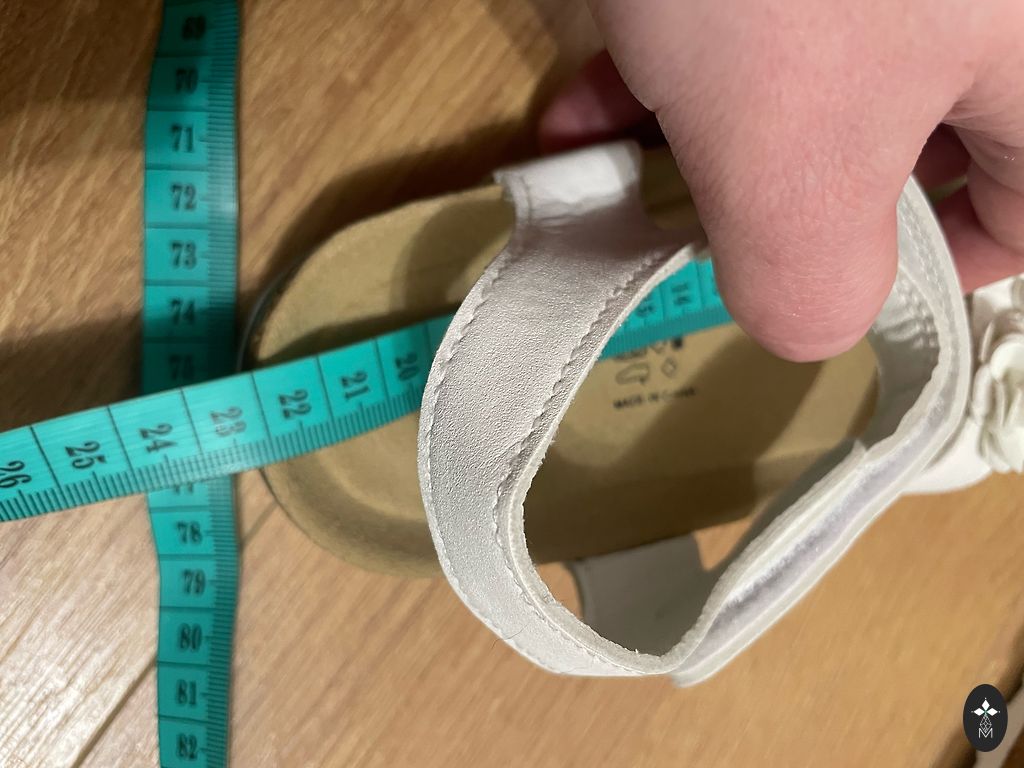 Leather, adjustable, lightweight, and soft. Shiny;).