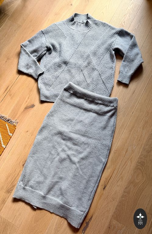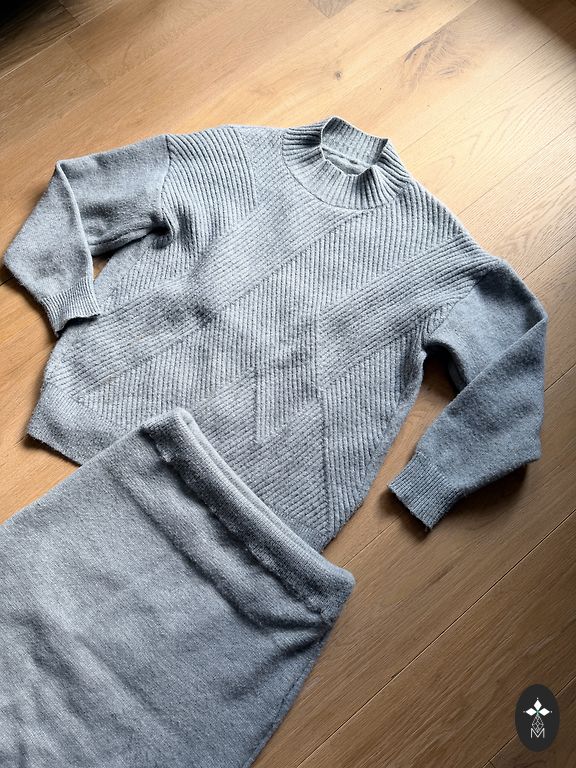 Komplektas su kelnėmis ir viršutine dalimi, stilingas, patogus.