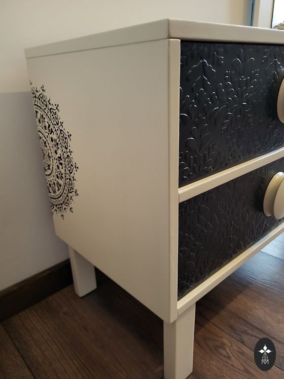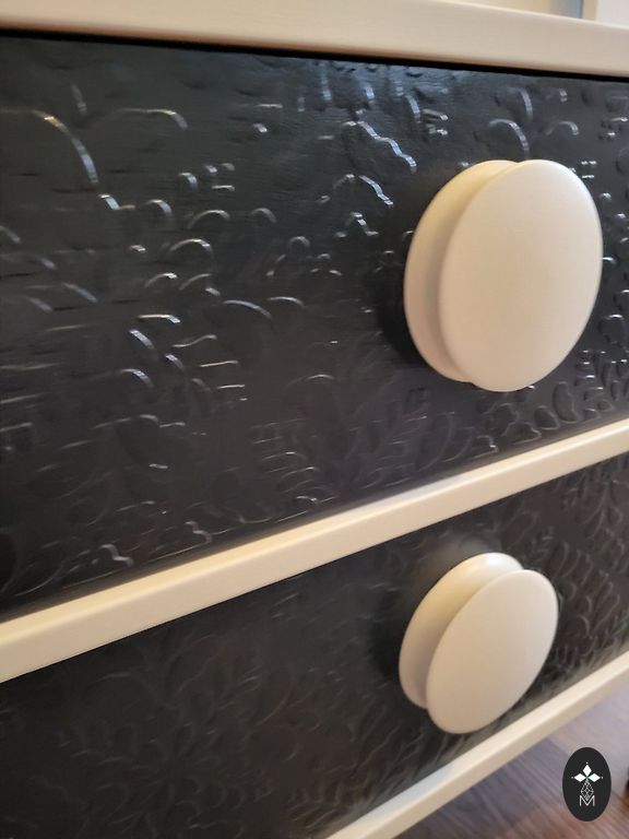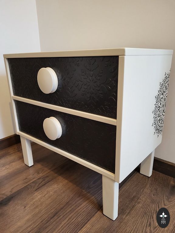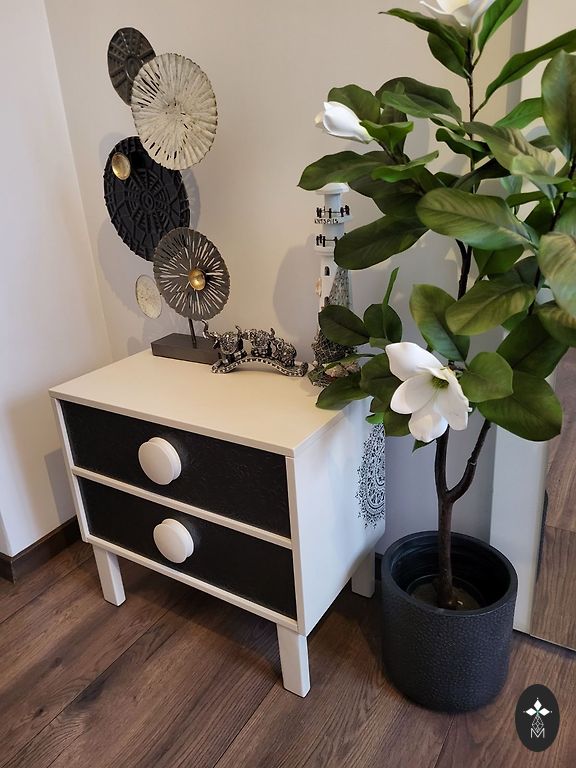 Corridor cabinet in beautiful beige color with black accessories. A true masterpiece. Real black suede sofa material.