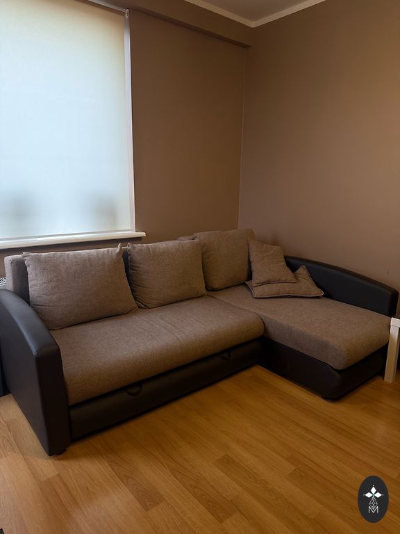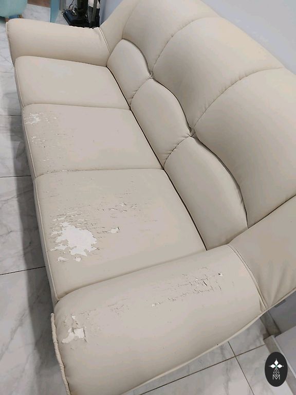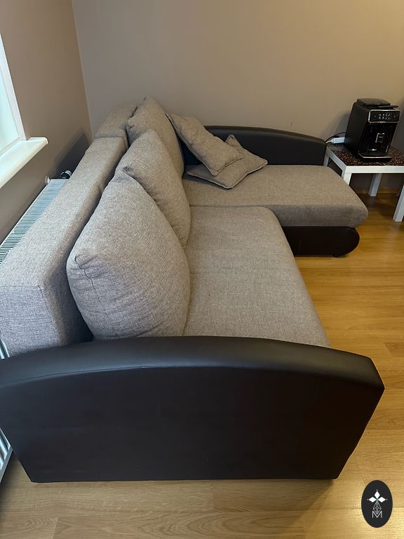 Large, comfortable sofa with adjustable back and armrests. Dimensions: 3.6 x 1.85 m. There are defects: a couple of cat-scratched corners and one middle section is worn out (visible in pictures). The sofa is assembled from 3 parts.