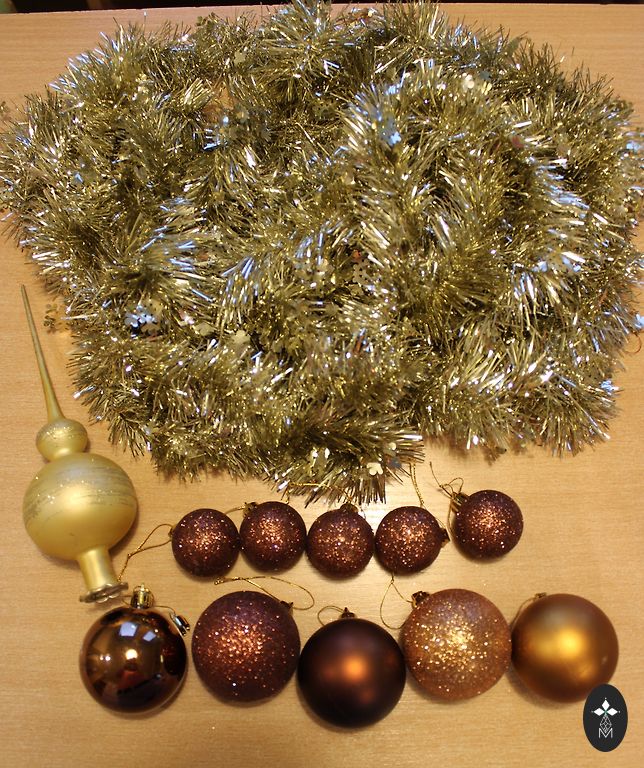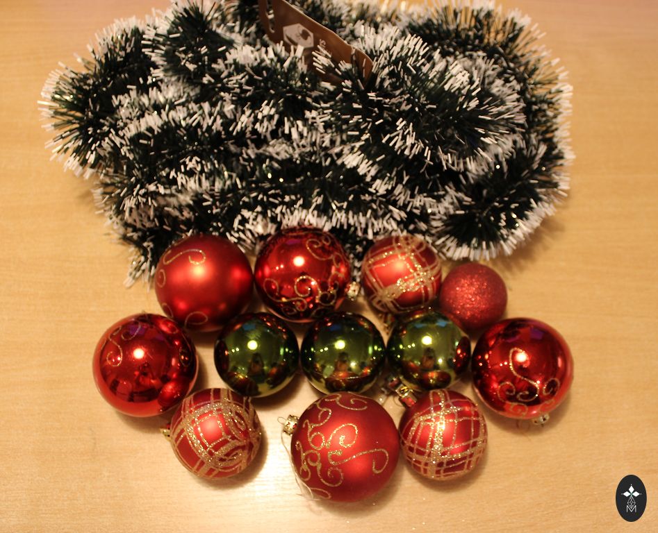 Naujos - 2 girliandos, 4 sidabro spalvos papuošimai ir elnias. Mėlynos disko rutuliai naudoti (su naudojimo žymėmis).