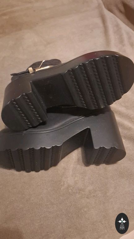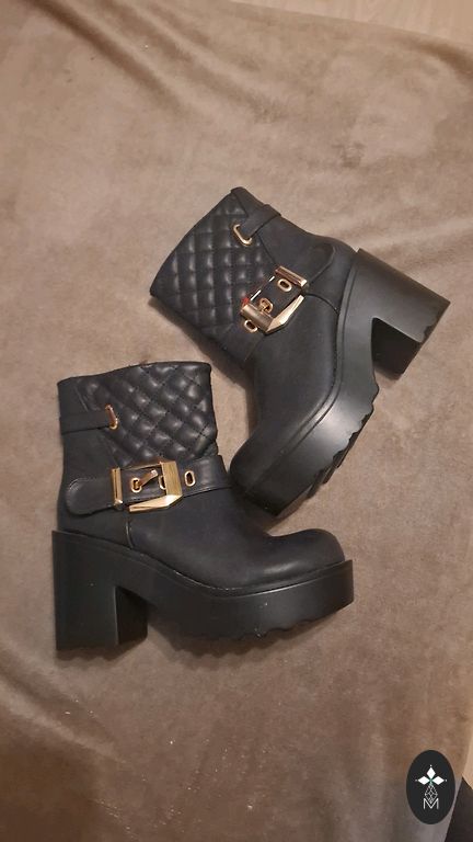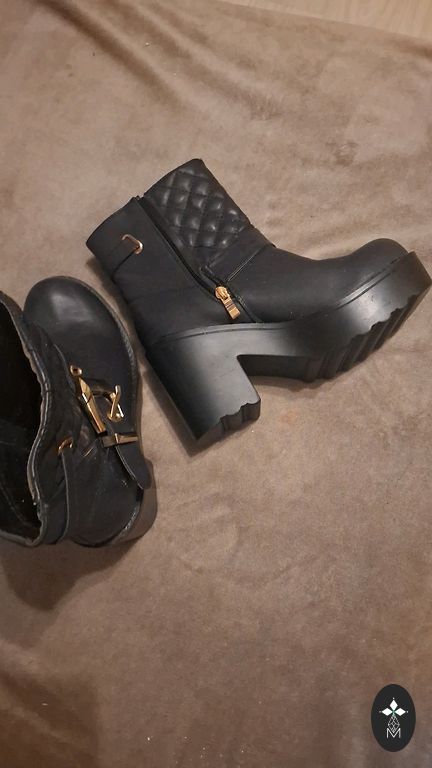 Tamsiai pilki batai, rudens-žiemos, vidus šiek tiek pašiltintas, bet ne pūkas. Vidpadis 24 cm. Kulnas su visa pado kraštine 8 cm, padas 2 cm.