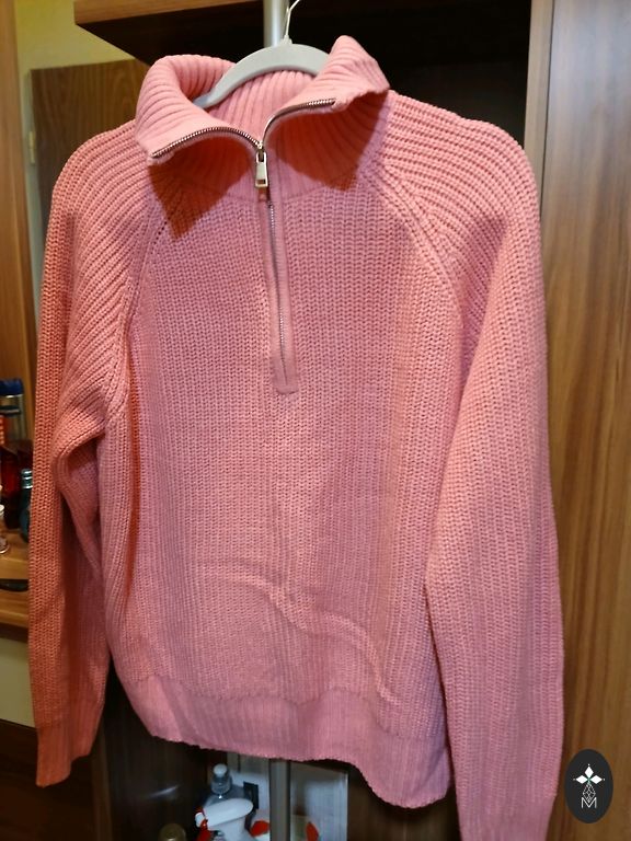 Очень тёплая. Цвет не совсем белый, молоко. Новая с биркой. Рукава длинные. На поясе сборка есть. Розовая для примера.