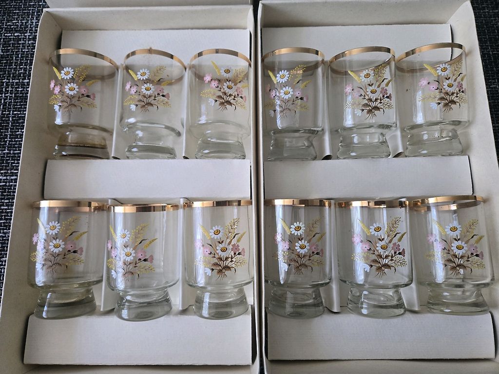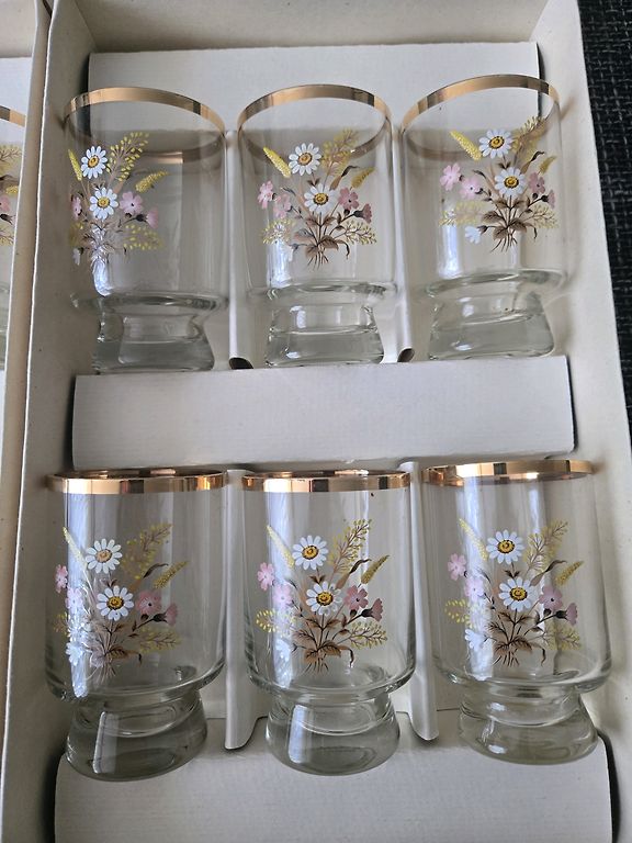 Three carafes + 2 shot glasses.