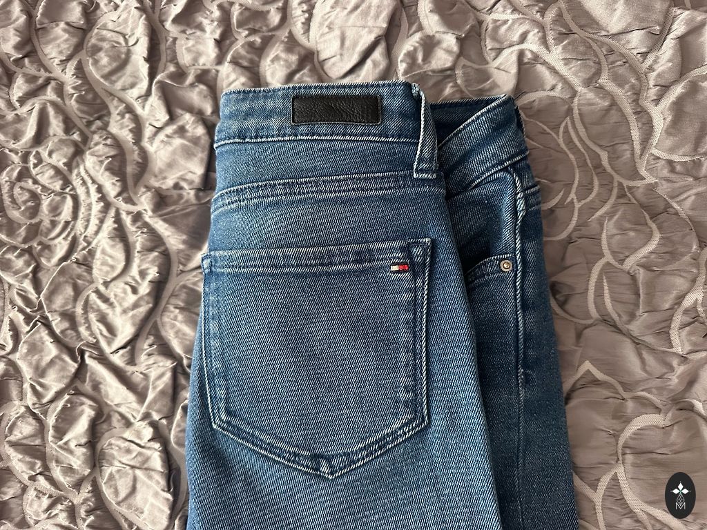 Šie džinsai nėra elastingi, todėl atidžiai sekame matmenis. :)