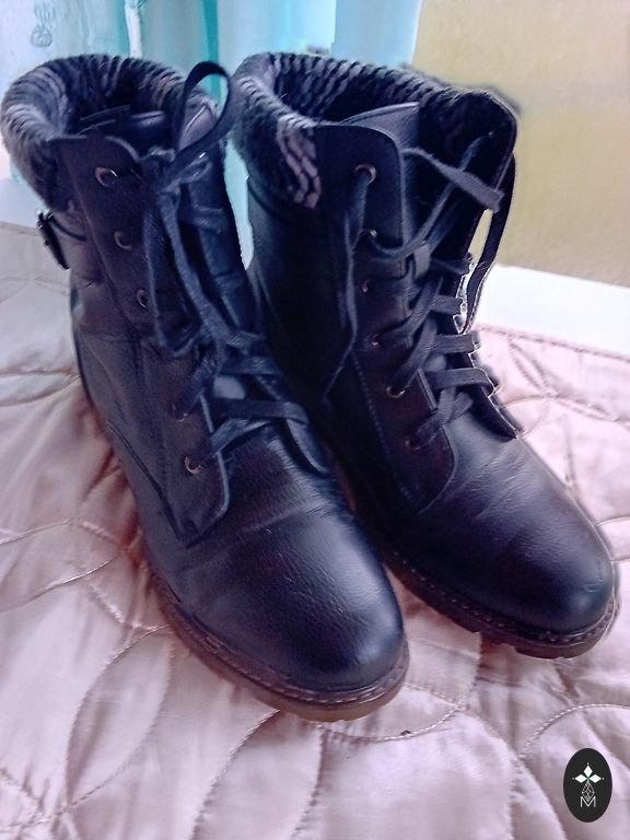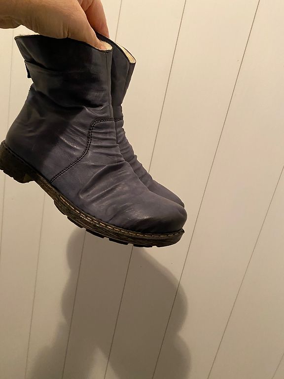 Warm natural suede, dark blue. Insole 27 cm.