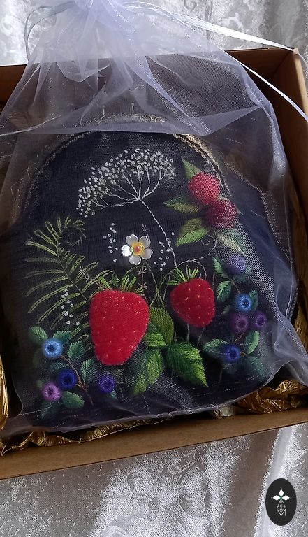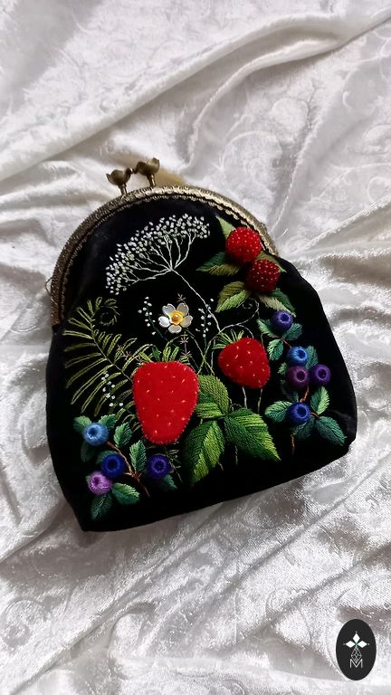С одной стороны вручную вышитый бархатный мешочек (мулине, различные ткани и бусины). С подкладкой. Отлично подойдет для хранения мелочей, украшений или маленькой косметики. Высота до застежки 10,5 см, ширина 9 см, глубина 4 см. Упакован для подарка в органзовый мешочек и еще в коробочку. Дополнительные расходы на пересылку. В моем профиле Andele также доступны ДРУГИЕ КОШЕЛЬКИ/ МЕШОЧКИ/ СУМОЧКИ с МОТИВАМИ ЯГОД, ЦВЕТОВ и ГРИБОВ!!! Есть возможность заказать мешочки (для косметики, очков и др.) и сумочки по пожеланиям клиента.